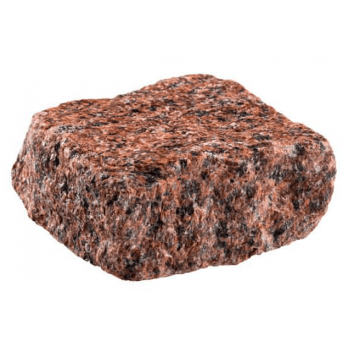 Гранитная брусчатка галтованная красная Лезниковского месторождения от производителя обработана в специальных барабанах которые придают краям сглаженные углы и стороны.